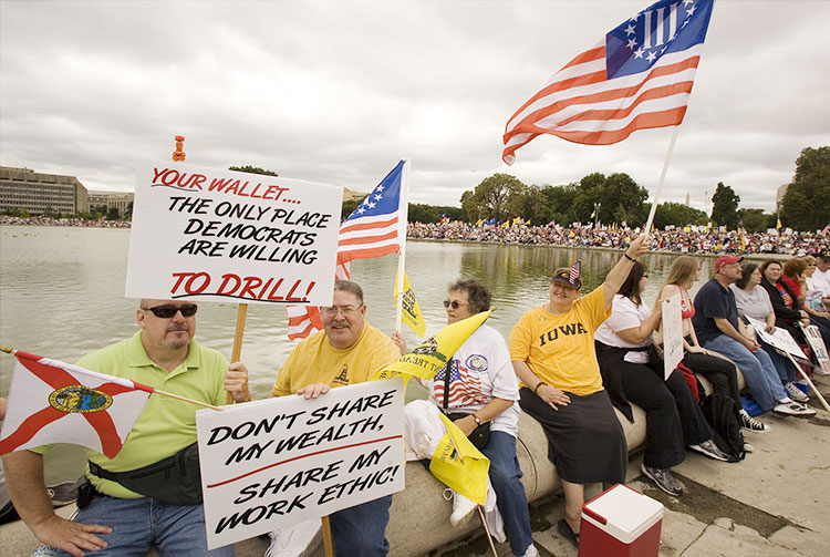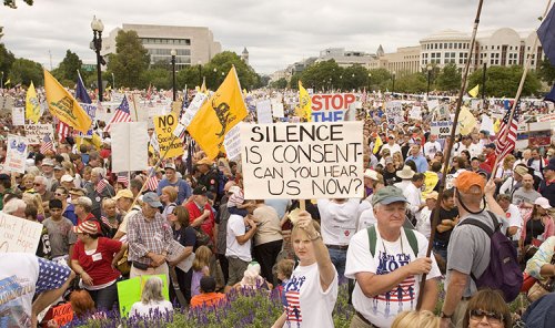 That sticker said a lot in a few words. Folks of the conservative persuasion are not given to participating in the nuisance of public demonstration. Self reliance nourishes the soul, life is good and too short to spend it pacing around with signs proclaiming the grievances du jour…normally.