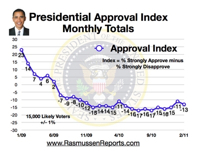 Hillary Clinton is tiring of Obama, the Great Undecider. And Clinton isn’t the only one. Look at this Rasmussen chart.
