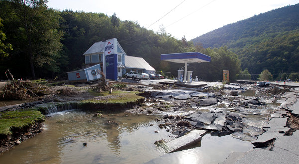 A very bad storm.  Trees and power lines were brought down by the winds but most of the damage was caused by torrential rains.  A dozen towns in the inland state of Vermont are totally isolated, some normally accessible only by a bridge or two and the bridges are simply gone.